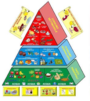 (...) "E' la prima volta che, alla base di una piramide, vi sono cereali, verdura e frutta, cioe' alimenti di origine vegetale, - afferma soddisfatto il prof. Carlo Cannella, presidente dell'INRAN -. Ed e' la prima volta che la piramide MD viene strutturata con gli alimenti che compongono un pasto principale alla base e, via via a salire, gli altri alimenti necessari a completare il pasto, distribuiti, a seconda che la frequenza di consumo consigliata sia giornaliera o settimanale".